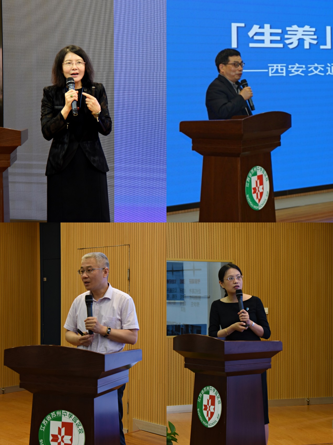 5月28日,西安交通大学第九届少年班预科培养研讨会暨首届家校论坛在苏州中学园区校举行。参与少年班预科一、二年级教学与管理的西安交大、交大附中、苏州中学、南开中学、杭州高级中学的一线教师以及预科一年级学生家长,共计130余人参与此次研讨。西交利物浦大学党委书记、副校长钞秋玲,西安交大本科生院副院长、招生办主任、教务处处长王秋旺,西安交大beat365正版唯一官网常务副院长杨森,交大附中校长訾艳阳,苏州中学校长卫新、副校长胡慧敏,南开中学副校长王文昌,杭州高级中学副校长费红亮,苏州研究院副院长王超锋、苏州巨杉智库总经理尹英杰出席会议。西安交大beat365正版唯一官网副院长王娟主持会议。
