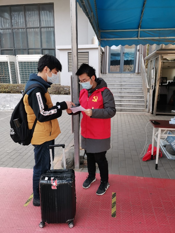 面对突如其来的新冠疫情,学校及时采取措施,加强校门出入管控,“非必要不外出”。钱学森书院党总支的党员同志们积极响应号召,主动承担校门值班的任务,协助保卫处提醒进出人员扫码、测温,减轻学校保卫处的压力。