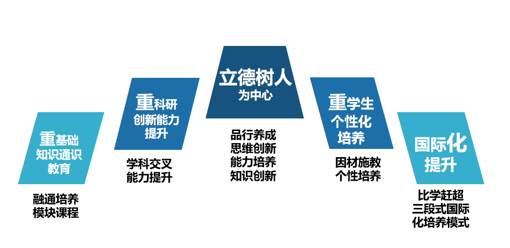 因材施教,重学生个性化培养。学校致力于为学生提供个性化成才成长环境,提供多样化培养菜单,构建模块化课程体系;设置“学分认证兑换制度”,实施国内外学分互认,允许跨年级、跨专业选修课程,允许个别学生跨校选课和提前修读研究生课程,实现跨国、跨校、跨院、跨学科选课;鼓励学生涉猎不同兴趣方向,实施“领先成长计划”,促使学生尽早接触学科前沿,培养创新精神和团队合作精神。