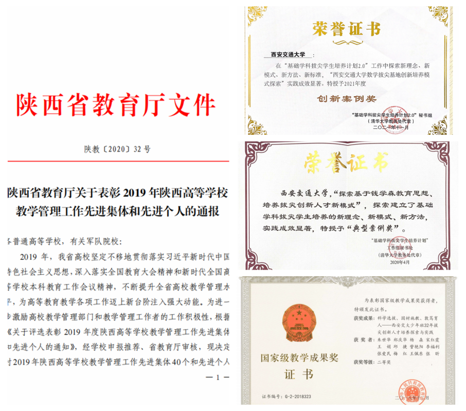 体制机制创新发展。学校作为首批入选拔尖计划的试点高校,首创“学院+书院”双院育人体制助力人才培养实践,在2013年教育部拔尖计划中期评估和2018年教育部拔尖计划十年评估高校中均排名前列。2018年获国家级教学成果奖二等奖1项,2015年、2019年分别获陕西省教学成果奖特等奖各1项,2019年荣获教育部“拔尖计划”典型案例奖,同年beat365正版唯一官网荣获陕西省高等学校教学管理先进单位。2019年数学、物理基地获陕西省教学成果奖特等奖共2项。
