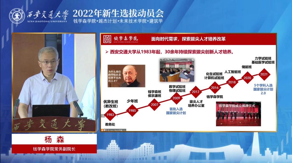 郑庆华强调,学校始终以为党和国家培养国之栋梁为己任,此次拔尖人才培养计划更是响应国家之需,更加注重培养学生追求卓越人生的态度和价值取向、开放包容的胸怀、较强的团队协作与组织能力,加强学生的思想引领和价值塑造。对进入各类选拔计划的学生而言,既是机遇,更是挑战,要做好付出艰辛努力的思想准备。学校将与学生、家长共同努力,把所有新生都培养成为栋梁之才,为民族复兴铺路架桥,为祖国建设添砖加瓦。