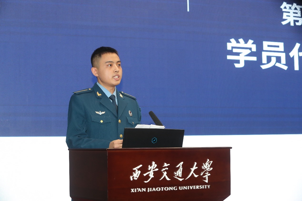 2022级八年制生长军官学员张效瑞代表全体学员表态,感谢空军军医大学和西安交通大学提供学习平台。他表示,将讲政治、守规矩,努力学习,认真求索,立志成才,报效祖国,不辜负空军军医大学的殷切期望,不辜负西安交通大学的精心培养。