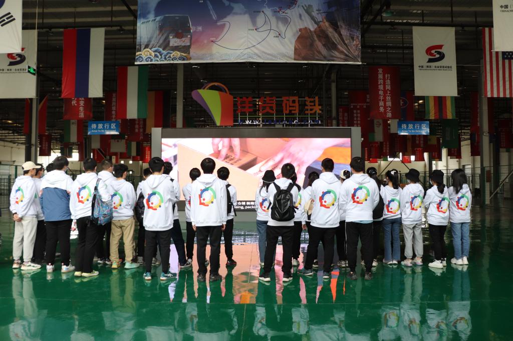 本次参观的首站是西安综合保税区。师生们在跨境电商监管中心,观看了仓储系统和集拼中心的宣传片,并认真聆听工作人员的讲解。以往从这里中转的大多是东南、华南沿海地区出产的日用品,相较大宗货物,它们质量轻、体积小、形状不规则,空运成本较高,而航运时间漫长,运往中亚、欧洲地区的最优选择便是由中欧班列“长安号”进行海铁联运。越杰学子们近距离观摩了集拼中心内正在工作的智能拆装检验设备,切实体会到了现代化国际化的物流操作水准。