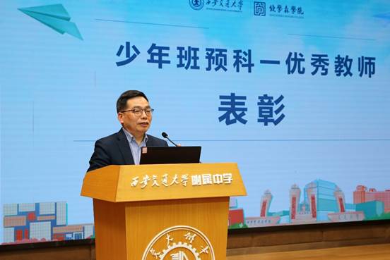 王秋旺宣读《西安交通大学关于表彰2021-2022学年少年班预科一优秀教师的决定》,对获得荣誉称号的8名授课教师进行了表彰,并鼓励与会教师以先进为榜样,认真总结经验,创新教学方法,把握人才培养规律,不断提升少年班教育教学水平。