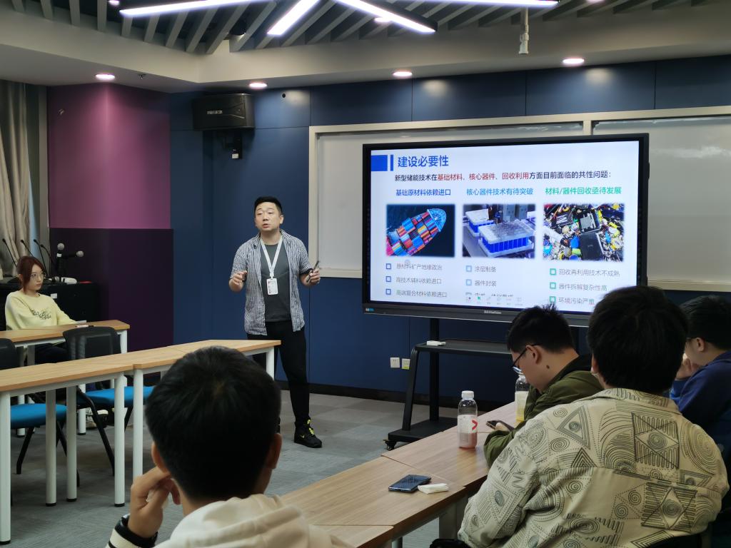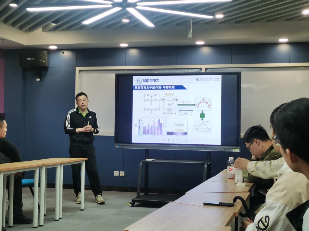 宋政湘教授从储能在电力中的应用出发向同学们介绍了储能系统模块的整体情况和具体研究方向及研究应用。