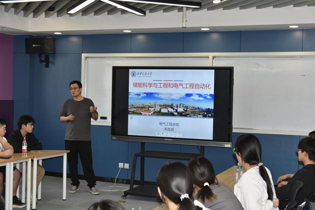 孟锦豪副教授从储能在电力中的应用出发向同学们介绍了储能系统模块的整体情况和具体研究方向及研究应用。