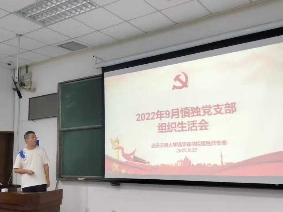 2022年9月27日晚,钱学森书院慎独党支部于主楼C-206教室召开“喜迎二十大,永远跟党走”九月专题组织生活会。会议由支部书记高浩田主持,支部党员、积极分子参加。