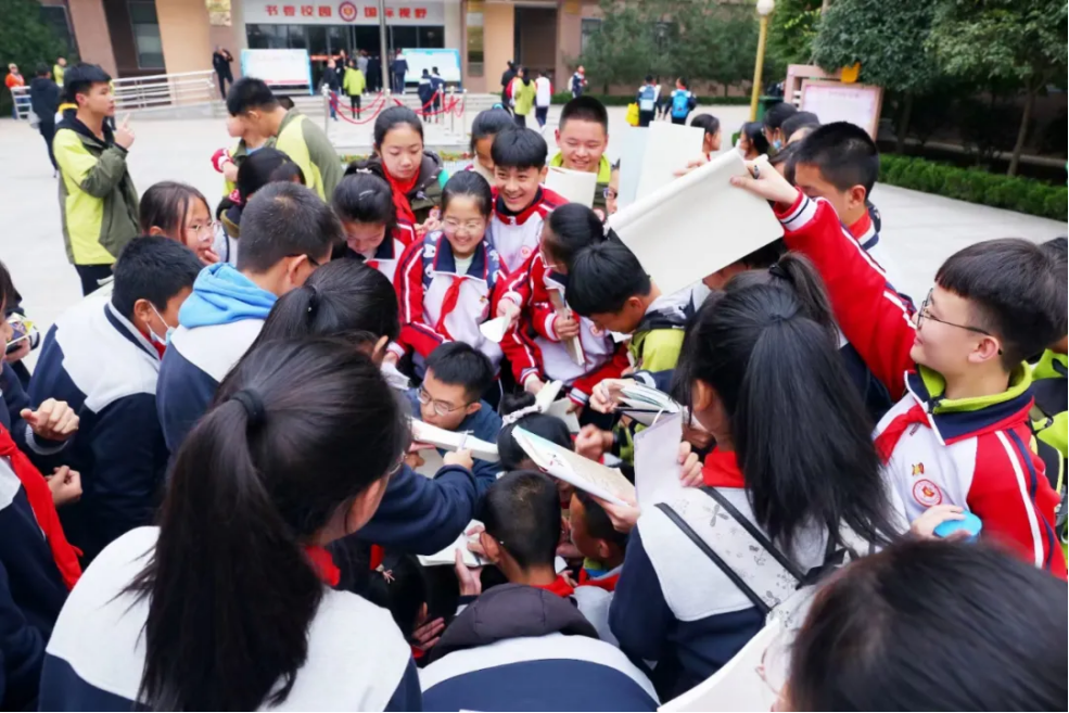 活动结束后,同学们争先恐后的找“新偶像”朱昊宁同学要签名,昊宁同学还为同学们写下寄语,承诺以后一定多和同学们沟通交流。